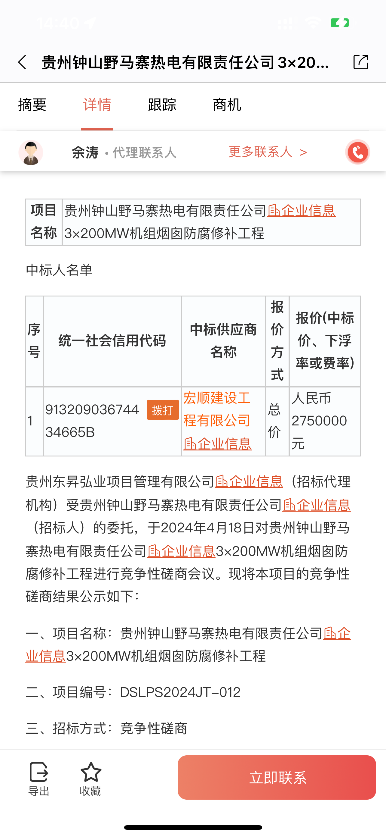 熱烈祝賀我公司中標(biāo)貴州鐘山野馬寨熱電公司煙囪防腐修補(bǔ)工程項(xiàng)目