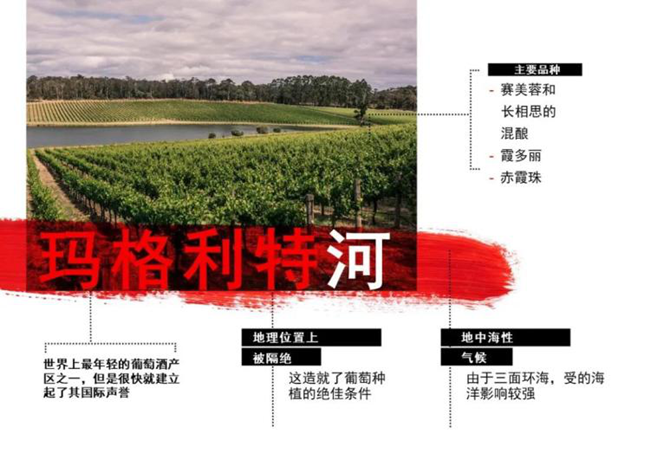 瑪格利特河是世界上最年輕的葡萄酒產(chǎn)區(qū)之一。從上世紀70年代初的第一個年份開始,它就迅速建立起了作為優(yōu)質(zhì)葡萄酒之鄉(xiāng)的國際聲譽。它為出產(chǎn)高品質(zhì)的澳洲葡萄提供了一個純凈的環(huán)境。
