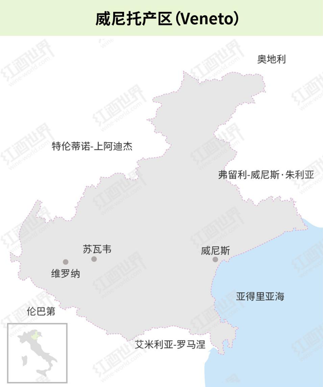 威尼托(Veneto)位于意大利的東北部,以世界知名“水城”——威尼斯(Venice)為首府,坐擁被聯(lián)合國(guó)教科文組織(UNESCO)納為世界文化遺產(chǎn)的維羅納(Verona),充滿藝術(shù)和文化的氣息。與此同時(shí),威尼托還是意大利舉足輕重的葡萄酒產(chǎn)區(qū),不僅擁有悠久的釀酒歷史,其獨(dú)具一格的釀酒工藝和多樣化的葡萄酒風(fēng)格也令人印象深刻。