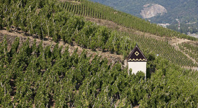 在北羅納河谷葡萄園,河流流經(jīng)之處多為狹窄的峽谷和陡峭的山坡,因此葡萄園也更多地種植在靠近河流的陡坡上。由于離海洋較遠,北羅納河谷葡萄園以大陸性氣候為主,但又多多少少會受到地中海(Mediterranean)氣候的影響,夏季炎熱干燥,冬季寒冷少雨。這里的土壤以礫石、石灰?guī)r和頁巖為主,排水性能優(yōu)越。這樣一來,種植在山坡上的葡萄藤可以更好地接收生長季充足的陽光,再加上排水性良好的土壤,有助于葡萄果實更好地成熟。北羅納河谷葡萄園著名的子產(chǎn)區(qū)羅第丘(Cote Rotie)在法語中意為“被炙烤的山坡”,就很形象地描繪了這一風(fēng)土特點。