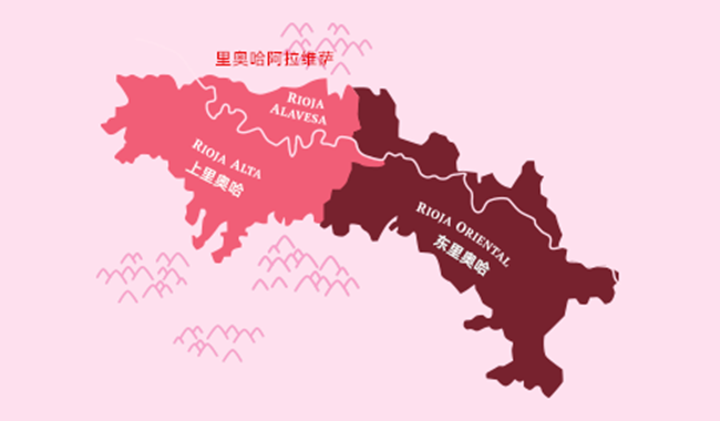 里奧哈位于西班牙北部,它北靠坎塔布里亞山脈(Sierra de Cantabria),南接伊比利亞山系(Sistema Iberico),沿埃布羅河(Ebro River)分布。里奧哈產(chǎn)區(qū)可以劃分為三個子產(chǎn)區(qū),分別是上里奧哈(Rioja Alta)、東里奧哈(Rioja Oriental)和里奧哈阿拉維薩(Rioja Alavesa)。