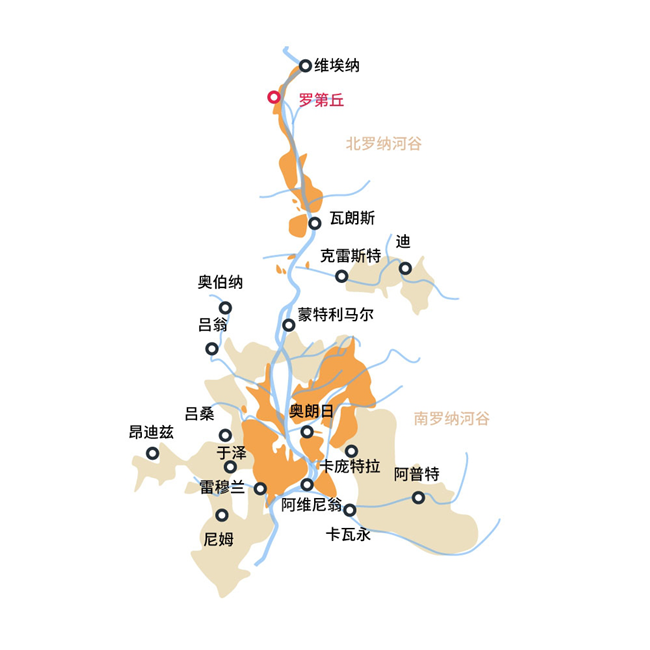 羅第丘冬季溫和,夏季炎熱,降雨相對規(guī)律。“風(fēng)”對羅第丘葡萄樹的生長有著至關(guān)重要的影響——山坡上的葡萄園一般朝向南或東南方向,這種朝向既能使葡萄園抵御寒冷的北風(fēng),又能讓葡萄樹生長在溫暖干燥的南風(fēng)中,促進(jìn)果實(shí)成熟的同時保護(hù)葡萄樹免受病害威脅。