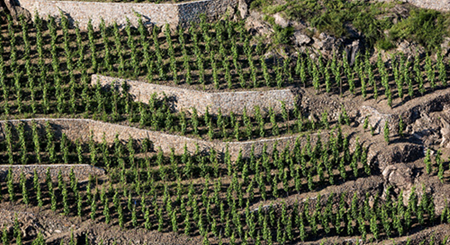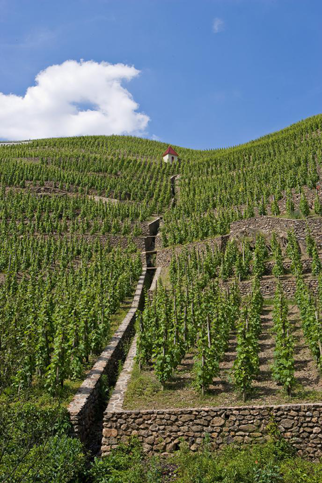 羅第丘地勢陡峭,有些山坡的坡度可達(dá)60度。為了蓄水保土,人們建造了被當(dāng)?shù)厝朔Q為“cheys”的石墻,它們經(jīng)年累月地佇立在羅第丘,見證了歲月變遷和人事變換,有些石墻的建造甚至可追溯至羅馬時期。經(jīng)過人類兩千多年的“雕刻”,這些石墻使羅第丘形成了狀似梯田的壯麗景觀。