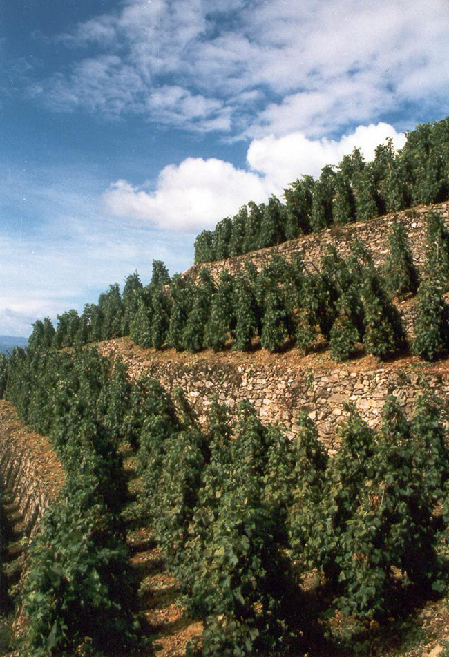 高品質(zhì)和獨(dú)特的風(fēng)味讓羅第丘葡萄酒受到了熱烈的歡迎,羅第丘的葡萄園數(shù)量在1890年達(dá)到了巔峰——朝陽的山坡上,即使是最小的地塊也種植著葡萄樹,呈現(xiàn)出一片欣欣向榮的景象。有些地塊因地勢陡峭,需靠種植者徒步八百米以上運(yùn)送葡萄,但人們甘之如飴。