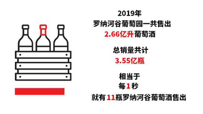 2019年,羅納河谷葡萄園一共售出2.66億升葡萄酒,總銷(xiāo)量共計(jì)3.55億瓶。這樣計(jì)算下來(lái),在2019年里的每一秒,都有11瓶羅納河谷葡萄酒售出,消費(fèi)者對(duì)羅納河谷葡萄酒的喜愛(ài)與信賴可見(jiàn)一斑。