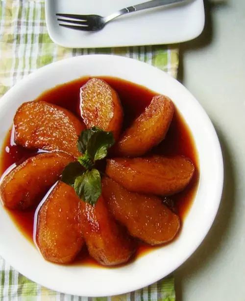 功效:法式紅酒燉雪梨,有溫暖腸胃,潤肺止咳的功效。