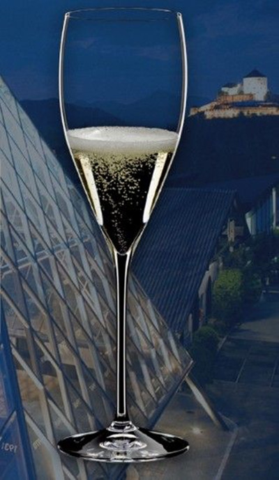 它最大的特點是杯身細長,像一朵纖細的郁金香,纖長的杯身是為了讓汽泡有足夠的上升空間,當你在品嘗一杯香檳的時候,你應(yīng)該注意到,標準的香檳杯在杯底有一個尖的凹點,仔細觀察就是這個小小的設(shè)計,使得汽泡更豐富更漂亮,仿佛所有的小氣泡都是從這個小圓點里面冒出來一樣。