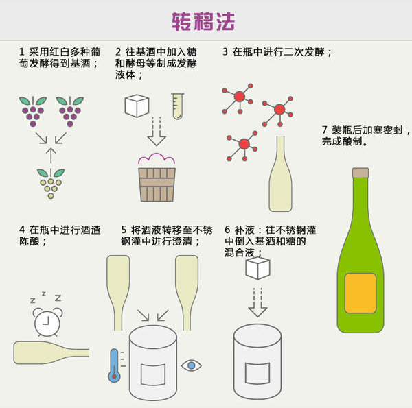 相比傳統(tǒng)釀造法,轉移法生產的起泡酒價格更加實惠。不過目前用轉移法來釀酒的生產商已經越來越少了,因為這種方法釀制出的起泡酒既達不到傳統(tǒng)釀造法的優(yōu)秀品質,又無法避免傳統(tǒng)釀造法帶來的不足。