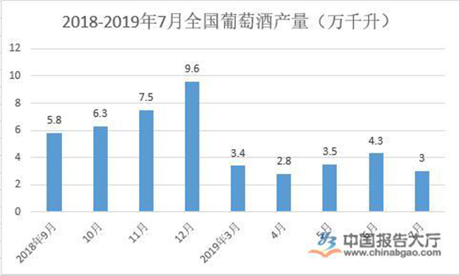 葡萄酒行業(yè)分析表示,根據(jù)國(guó)家統(tǒng)計(jì)局最新數(shù)據(jù)顯示,2018年全年全國(guó)葡萄酒產(chǎn)量達(dá)到了62.9萬千升,累計(jì)下降7.4%。截止至2019年6月全國(guó)葡萄酒產(chǎn)量為4.3萬千升,同比下降6.5%。累計(jì)方面,2019年1-6月全國(guó)葡萄酒產(chǎn)量達(dá)到24.5萬千升,累計(jì)下降19.9%。