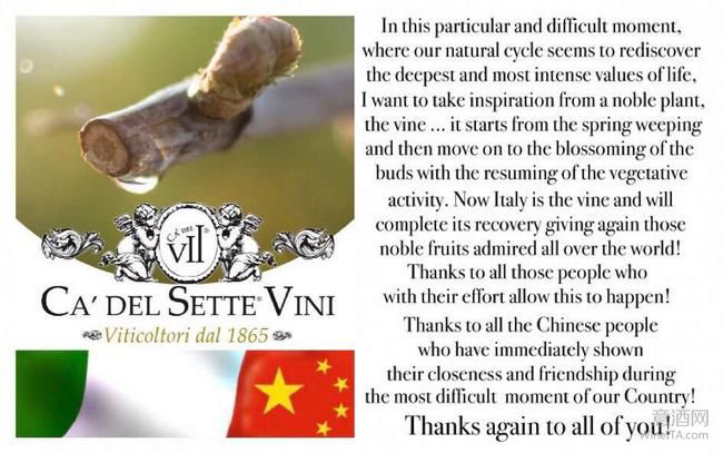 危難見真情。中國(guó)抗擊新冠病毒疫情的戰(zhàn)役剛接近尾聲,就向意大利無(wú)私的伸出援手,派出精英醫(yī)療隊(duì)、援助醫(yī)療防疫物資。意大利酒莊通過(guò)海報(bào)、宣傳,表達(dá)對(duì)中國(guó)人民的感激之情。