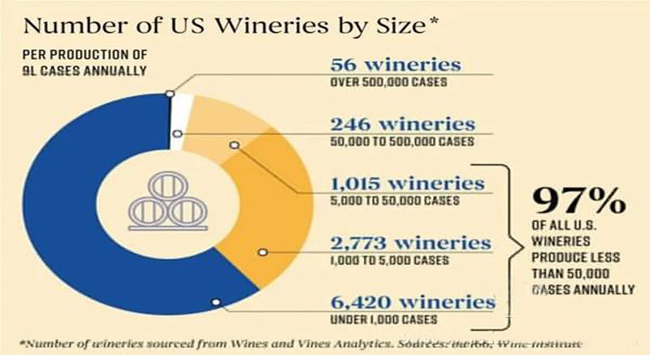 美國97%的酒廠生產(chǎn)的葡萄酒總和不到50000箱,預(yù)計年收入損失在36%到66%之間,受影響最大的是小型酒廠。規(guī)模越小的酒廠損失則越大,生產(chǎn)1000至5000箱的酒廠預(yù)計損失47.5%的年收入,而生產(chǎn)1000箱以下的酒廠其損失高達(dá)66%。