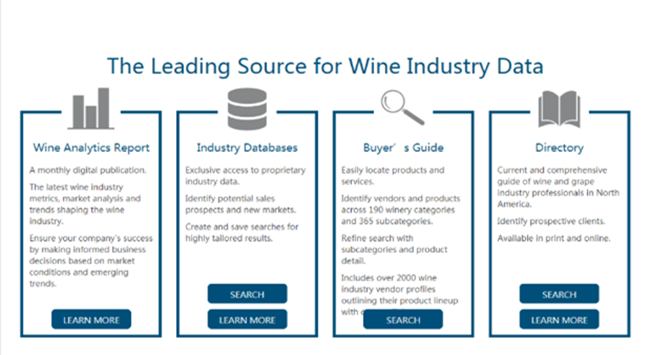 葡萄酒零售商和制造商將有更廣泛的渠道了解葡萄酒的種類,與尼爾森的季度報(bào)告的季度報(bào)告相結(jié)合,了解細(xì)分市場(chǎng)的規(guī)模和趨勢(shì),按價(jià)格層次、原產(chǎn)地、品種和種類劃分的零售計(jì)量數(shù)據(jù)、目的地市場(chǎng)。用戶將有能力訪問類別和分部數(shù)據(jù)尼爾森和 DTC裝運(yùn)數(shù)據(jù)部分或整體均可,聯(lián)合方案中的DTC裝運(yùn)包括在酒廠的網(wǎng)上訂單,網(wǎng)站、酒廠葡萄酒俱樂部發(fā)貨給他們的成員,品酒室采購發(fā)貨到根據(jù)酒莊所在地區(qū)、年度酒莊產(chǎn)量和目的地追蹤銷售情況,貨物種類、品種和價(jià)格。
