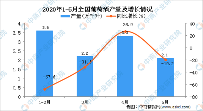 2020年1-5月全國葡萄酒產(chǎn)量統(tǒng)計數(shù)據(jù)