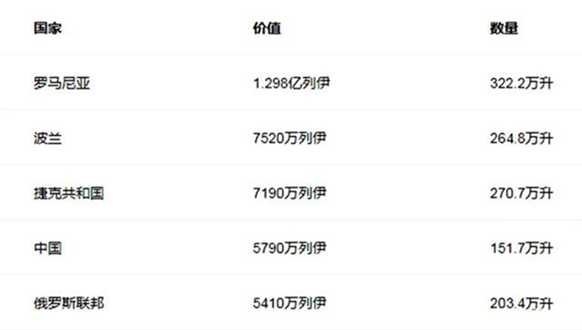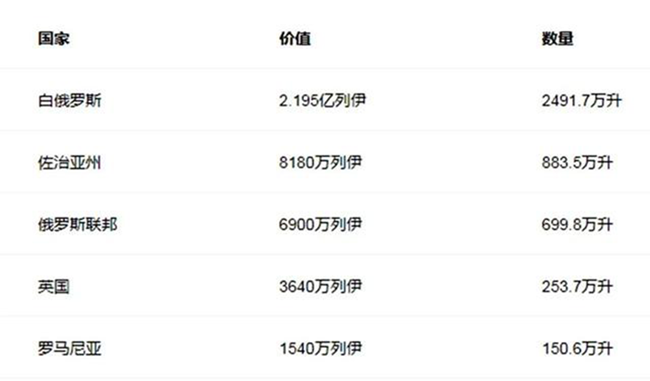 摩爾多瓦近五年上半年葡萄酒出口總額數(shù)據(jù)