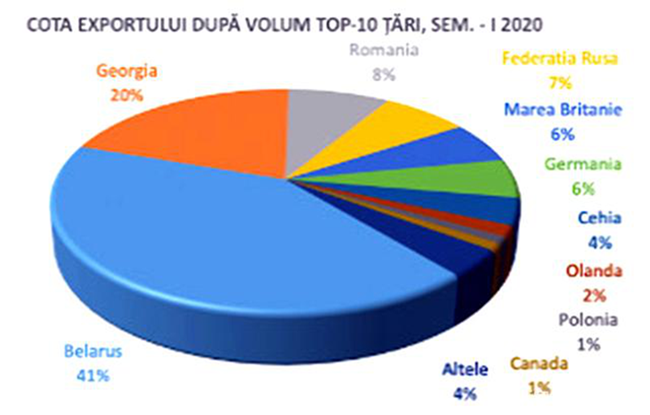 2020年前6個月,摩爾多瓦葡萄酒出口到全世界56個國家和地區(qū),其中羅馬尼亞、烏克蘭和捷克共和國的需求增加,而俄羅斯聯(lián)邦和白俄羅斯的需求減少,這種波動與新冠全球大流行局勢和實物進出口暫時停止有關(guān)。