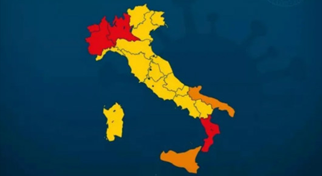 綜合意大利《24小時太陽報》、安莎社、Fanpage網站等報道,意衛(wèi)生部將全國分為紅色、橙色和黃色3種不同風險地區(qū)。其中,最高風險的“紅區(qū)”包括:倫巴第(Lombardia)、皮埃蒙特(Piemonte)、卡拉布里亞(Calabria)、瓦萊達奧斯塔(Valle d'Aosta);中等風險的“橙區(qū)”包括:普利亞(Puglia)、西西里(Sicilia);其余地區(qū)均被歸為風險較低的“黃區(qū)”。根據目前疫情趨勢,威尼托(Veneto)、利古里亞(Liguria)、坎帕尼亞(Campania)和托斯卡納(Toscana)的指標已非常接近“橙區(qū)”。