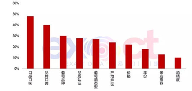 數(shù)據(jù)顯示,消費(fèi)更愿意跟隨內(nèi)心,為個(gè)人喜好買單,口感口味(48%)超過品牌口碑(40%)和價(jià)格(22%)成為排名第一的影響購(gòu)買因素,可見消費(fèi)者在選購(gòu)葡萄酒時(shí)趨于理性。