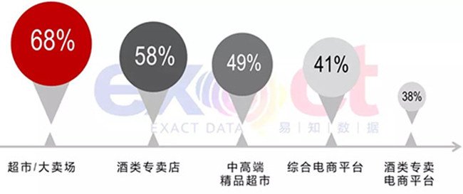 近年線上零售發(fā)展迅猛,雖然從數(shù)據(jù)來看,超市/大賣場(chǎng)、酒類專賣店、精品超市三種傳統(tǒng)零售渠道仍占大比重,但仍然有41%和38%的消費(fèi)者選擇線上平臺(tái)。且隨著千禧一代年輕消費(fèi)者崛起,線上消費(fèi)的意愿會(huì)更強(qiáng)烈。