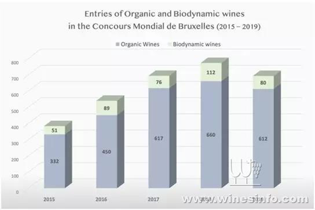 有機葡萄酒和生物動力法葡萄酒的參賽酒款數(shù)量(2015年至2019年)