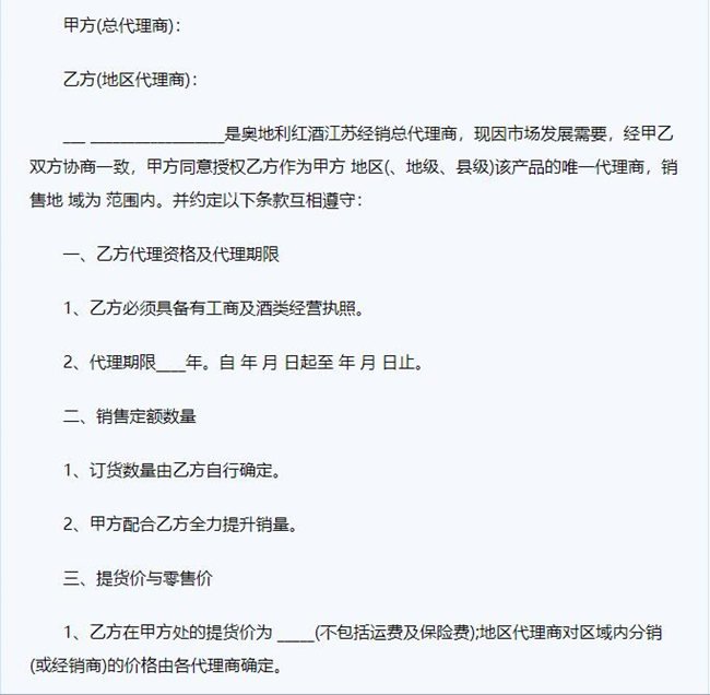 現(xiàn)在紅酒行業(yè)的發(fā)展前景比較好,投資做紅酒代理生意的人自然也非常多。那么投資的話,簽署代理合同的時(shí)候應(yīng)該怎么寫(xiě)呢?又有沒(méi)有什么注意事項(xiàng)呢?下面就跟小編一起來(lái)了解下簽署紅酒代理合同范本大全和注意事項(xiàng)吧!